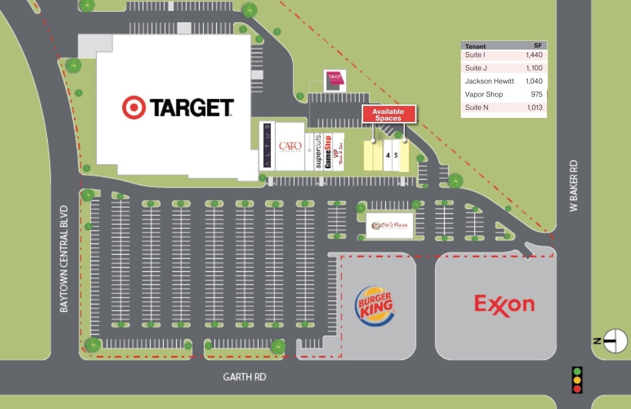 ~Prime end-cap retail space available 2,540 SF combined (Suite I - 1,440 SF & Suite J - 1,100 SF) ~High visibility location Endcap position with significant street frontage, ideal for attracting foot traffic and maximizing exposure ~Target Shadow-Anchored Center Positioned within a well-established retail hub, benefiting from the strong traffic flow of Target, Cato, Supercuts, GameStop, Sally Beauty Supply and other nearby tenants ~Flexible Lease Options Choose to lease the spaces individually or combine them for a larger retail footprint, ideal for retailers, restaurants, or service providers ~Parking Ample parking available for customers with easy access to the center
